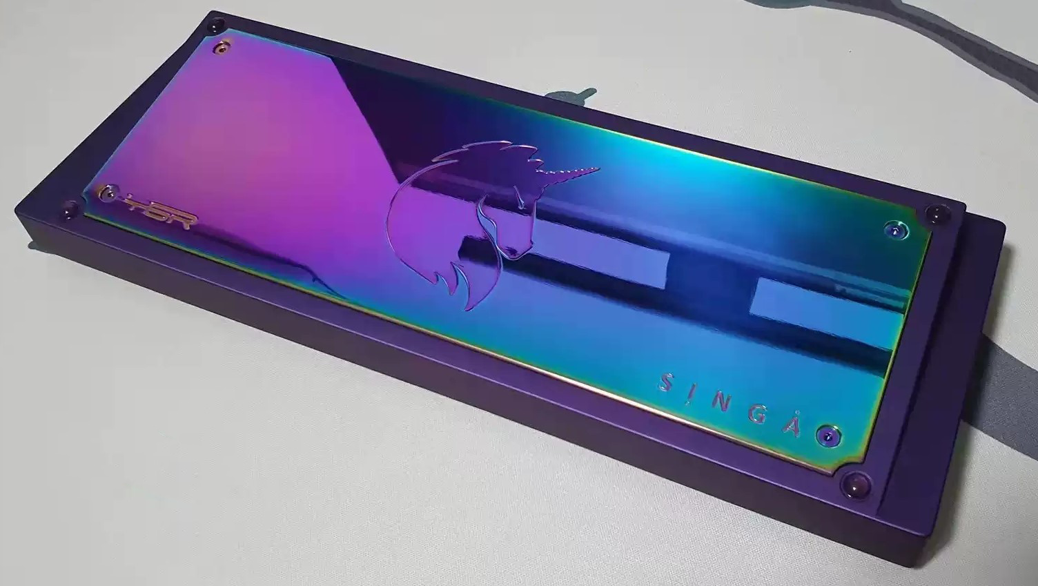 Stainless steel mirror keyboard case backplane: The keyboard case backplane made of food-grade stainless steel 316, after CNC machining, is plasma polished to present a mirror-like effect.